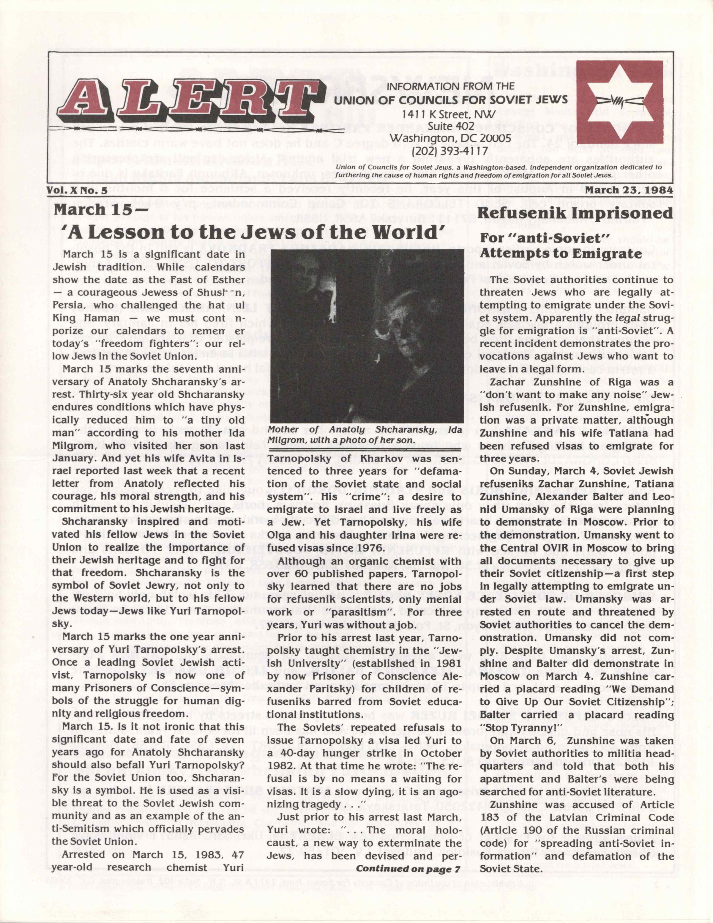 Newsletter published by the Union of Councils for Soviet Jews