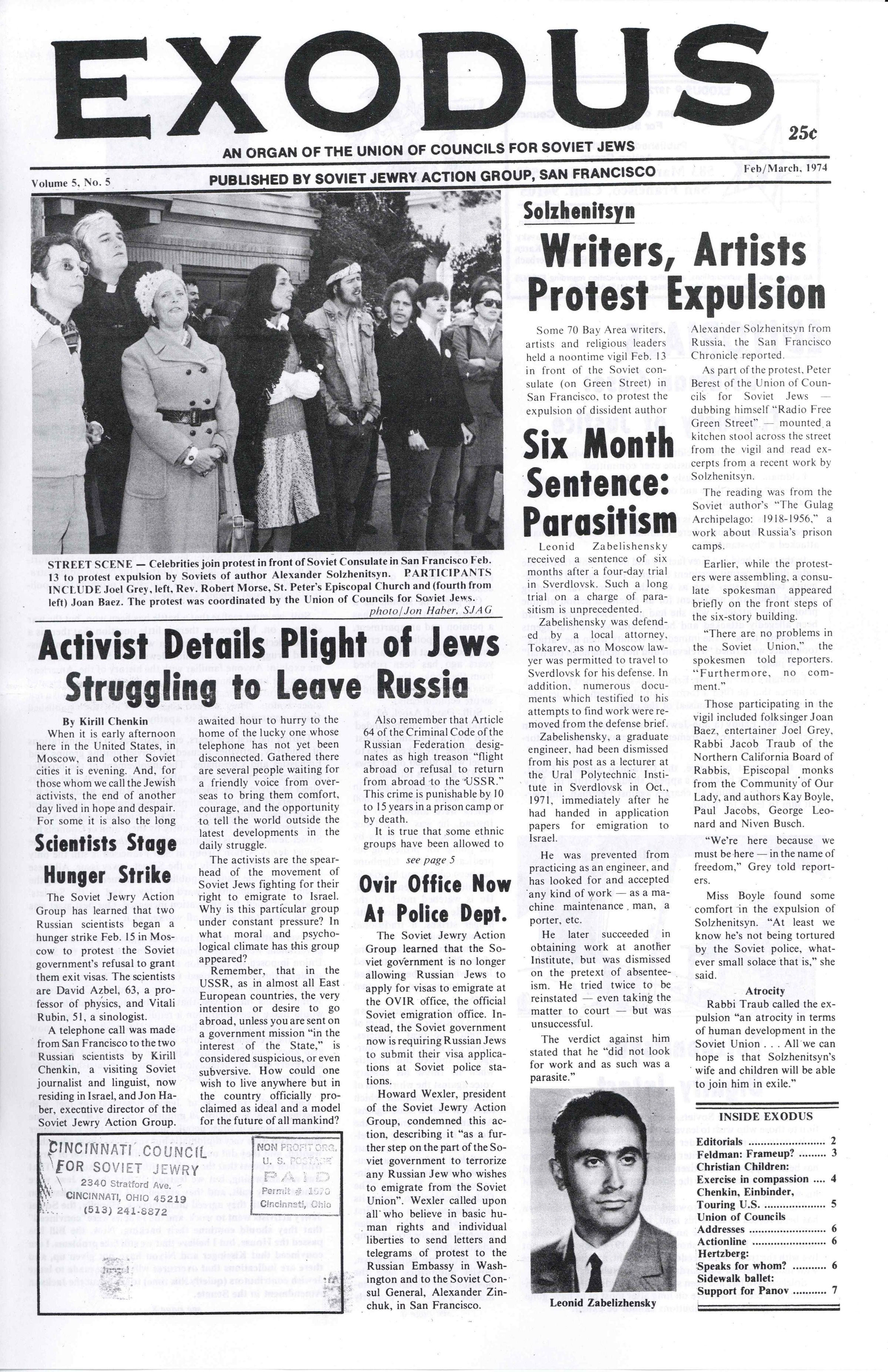 Union of Councils for Soviet Jews, United States. Trade Act of 1974. Title 4. Section 402, Solzhenit︠s︡yn, Aleksandr Isaevich, 1918-2008, Zabelizhensky, Leonid