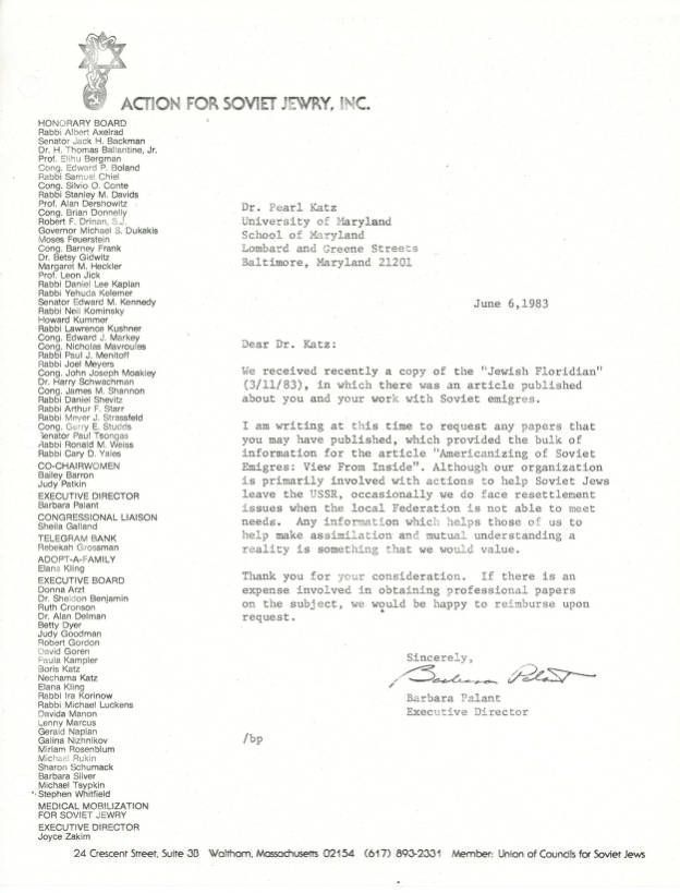 Union of Councils for Soviet Jews, Katz, Pearl, 1940-