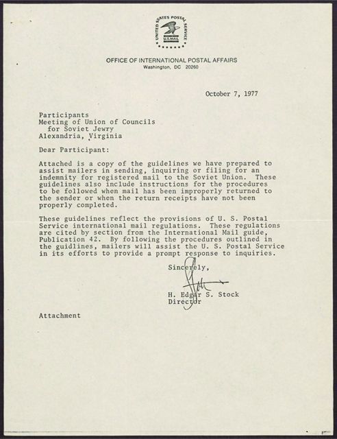 Cleveland Council on Soviet Anti-Semitism, Union of Councils for Soviet Jews, Rosenblum, Louis, Student Struggle for Soviet Jewry, United States Postal Service, Southern California Council for Soviet Jews, South Florida Conference on Soviet Jewry, New England Student Struggle for Soviet Jewry