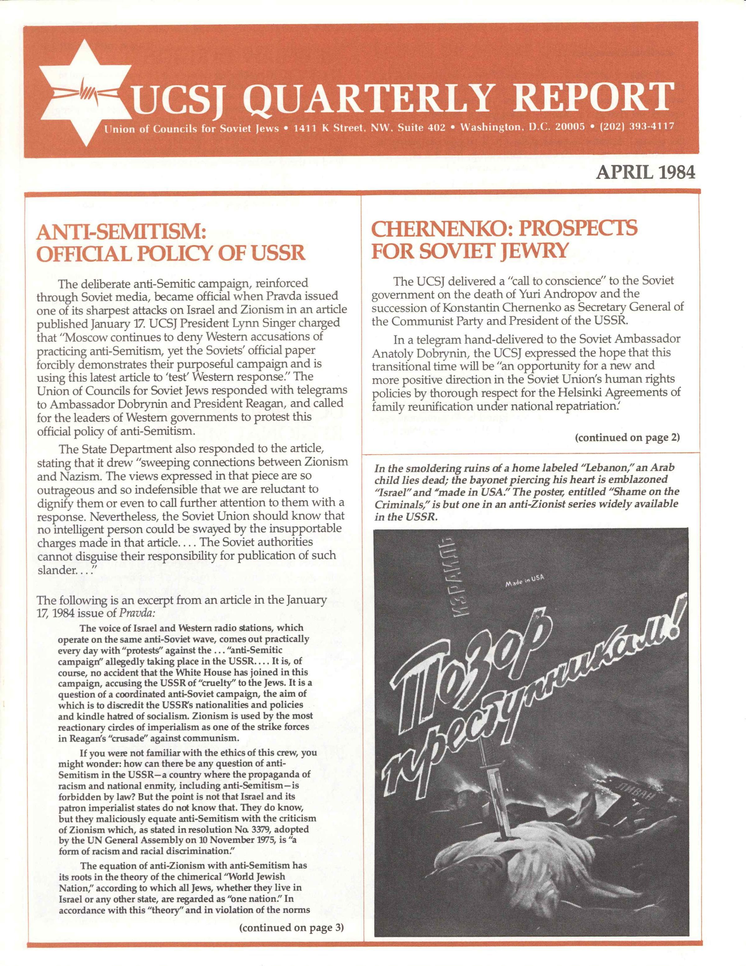 Quarterly newsletter published by the Union of Councils for Soviet Jews