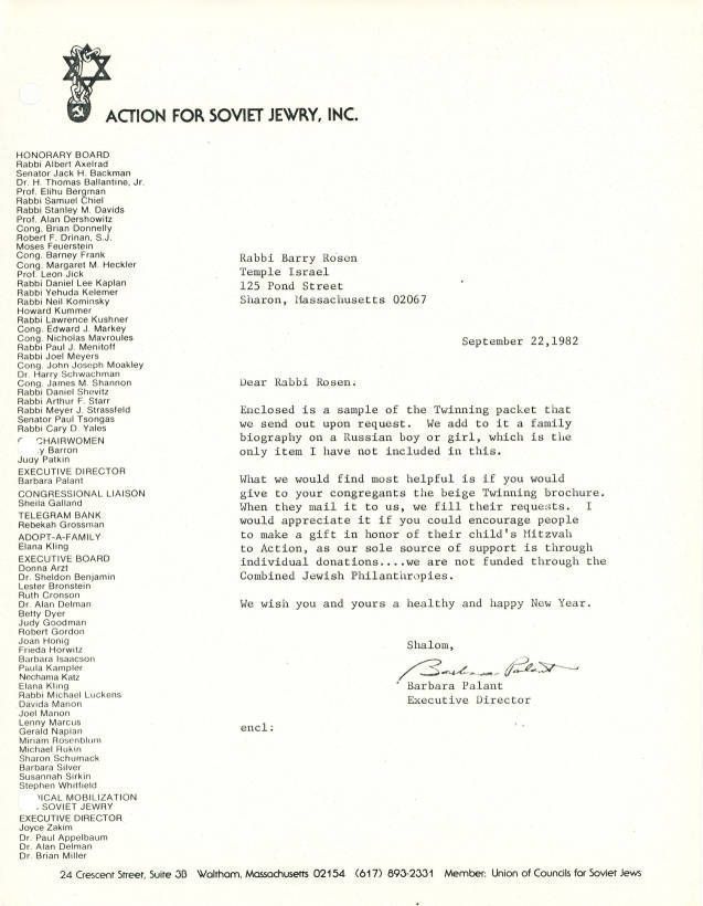 Union of Councils for Soviet Jews, Temple Israel (Sharon, Mass.)