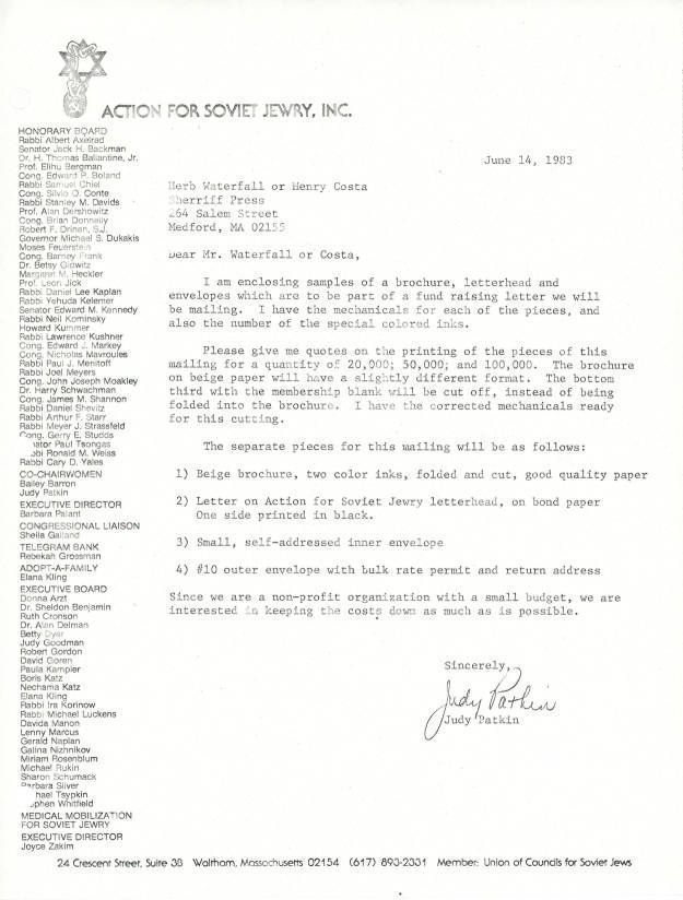 Correspondence - Judy Patkin to Herb Waterfall or Henry CostaEntry/Object ID