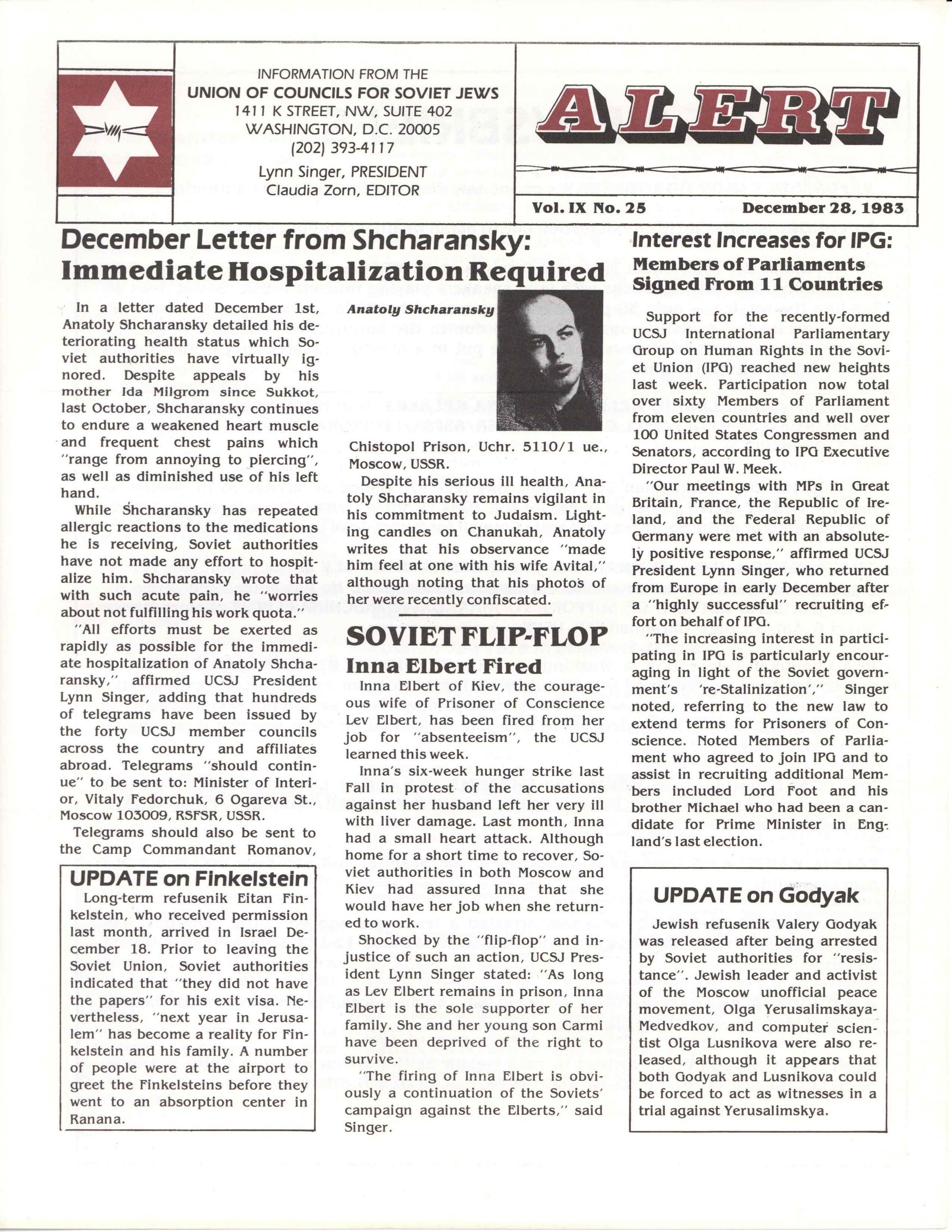 Shcharansky, Anatoly, Jews, Soviet, Political prisoners, Elbert, Inna, International Parliamentary Group on Human Rights in the Soviet Union, Refuseniks