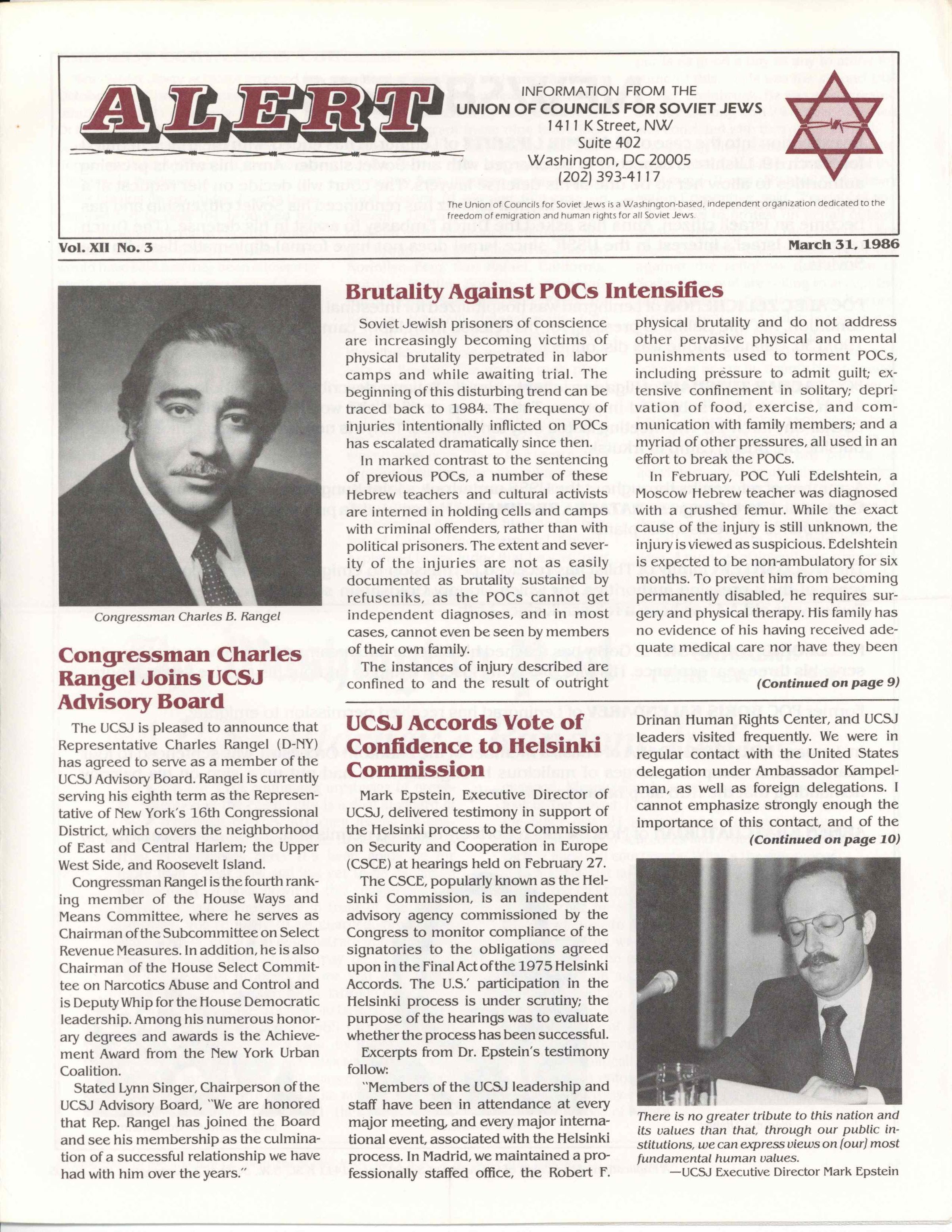 Political prisoners, Human rights, Rangel, Charles B., Epstein, Mark, United States. Congress. Commission on Security and Cooperation in Europe, Jews, Soviet