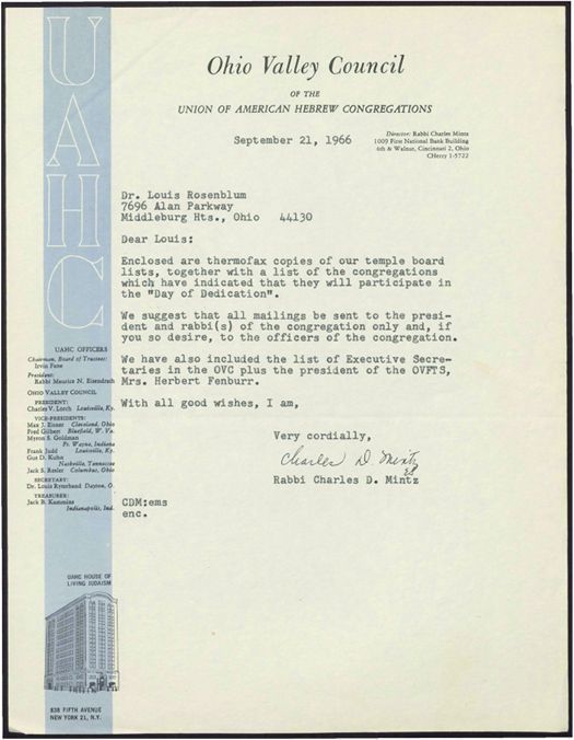 Box 01 folder 010 : mailing lists, day of dedication, Union of American Hebrew Congregations (Ohio Valley Region)