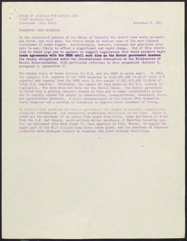 Cleveland Council on Soviet Anti-Semitism, Union of Councils for Soviet Jews, Rosenblum, Louis, United States. Department of Commerce