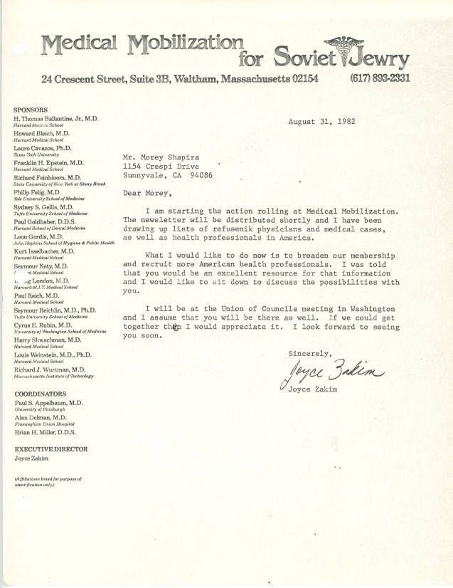 Letter regarding recruiting more members to Medical Mobilization for Soviet Jewry.