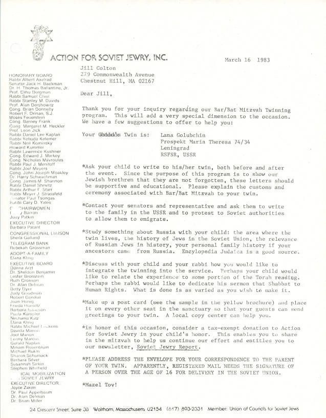 Correspondence - Soviet Jewry to Jill Colton