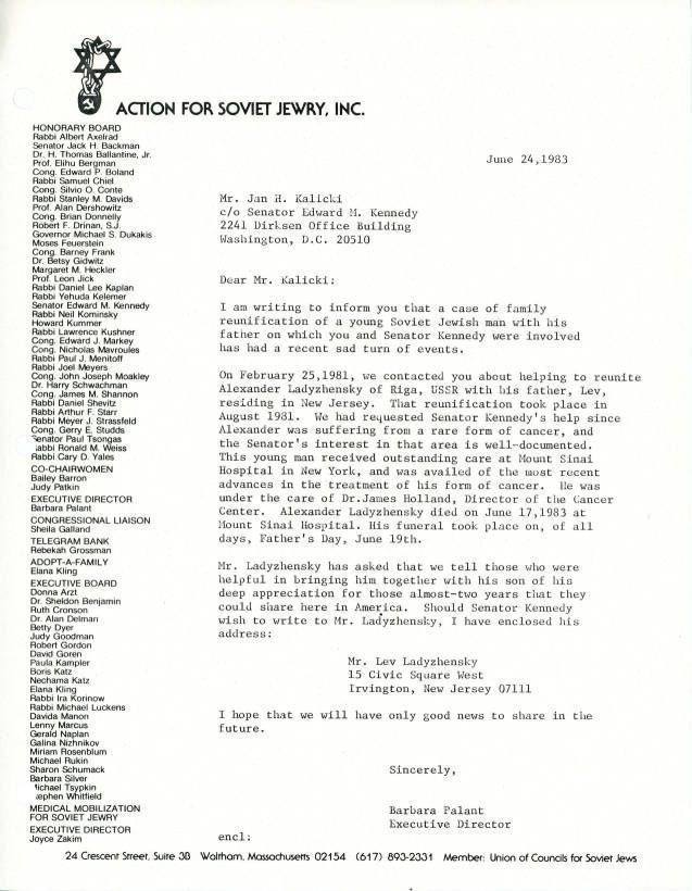 Union of Councils for Soviet Jews, Kennedy, Edward Moore, 1961-, Ladyzhenskiĭ, Alexander, Ladyzhenskiĭ, Lev