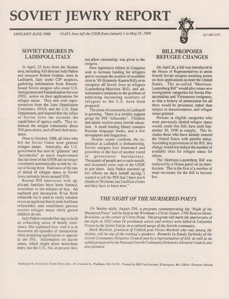 Refuseniks, Jews, Soviet, Emigration & immigration, Antisemitism, Political prisoners, Jews -- Massachusetts -- Boston, Hunger strikes, Jews--Italy, Refugees, Night of the Murdered Poets