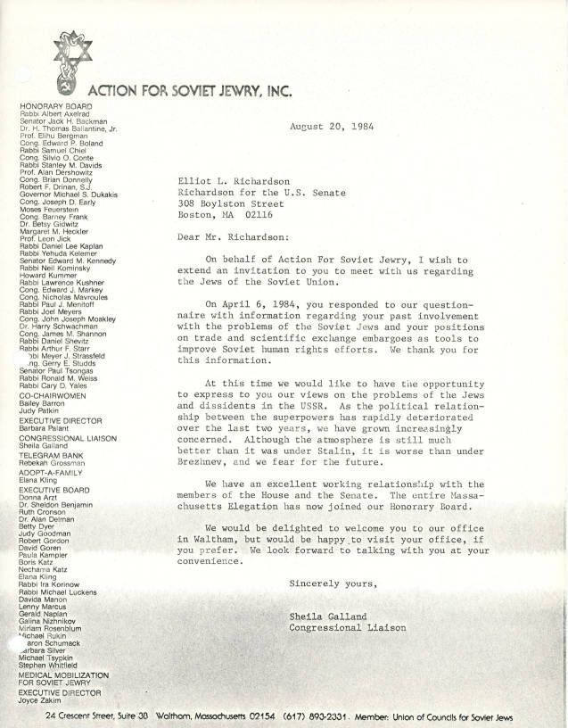 Union of Councils for Soviet Jews, Richardson, Elliot L., 1920-1999Copyright