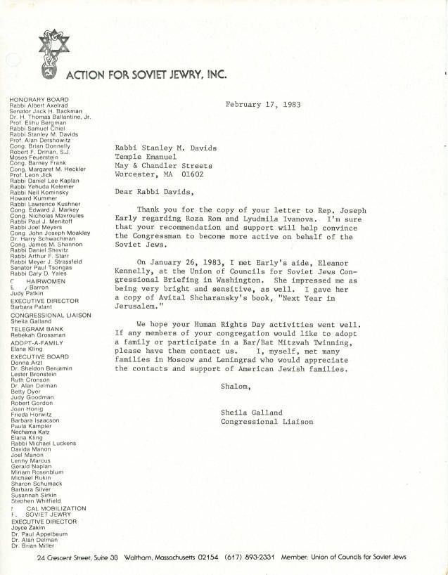 Jews -- Massachusetts -- Boston, Refuseniks, Emigration & immigration, Jews, Soviet, Human rights, Political action, Congressmen, Rabbis