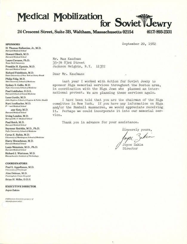 Jews -- Massachusetts -- Boston, Jews, Soviet, Refuseniks, Emigration & immigration, Jews -- Latvia -- Riga, Massacres