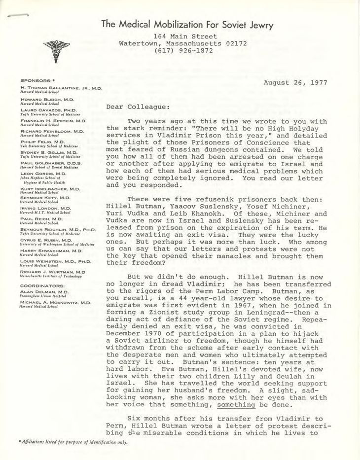 Jews -- Massachusetts -- Boston, Jews, Soviet, Emigration & immigration, Refuseniks, Physicians, Human rights, Political prisoners