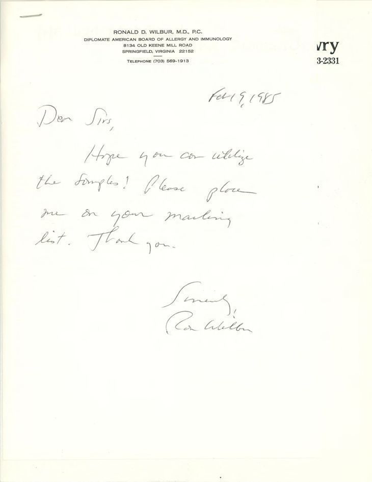 Correspondence - Ronald D. Wilbur and Joyce Zakim