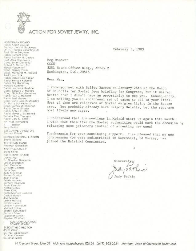Union of Councils for Soviet Jews, Markey, Edward J.