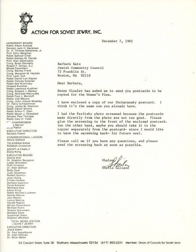 Union of Councils for Soviet Jews, Jewish Community Relations Council of Greater Boston, Shcharansky, Anatoly, Paritsky, Alexander