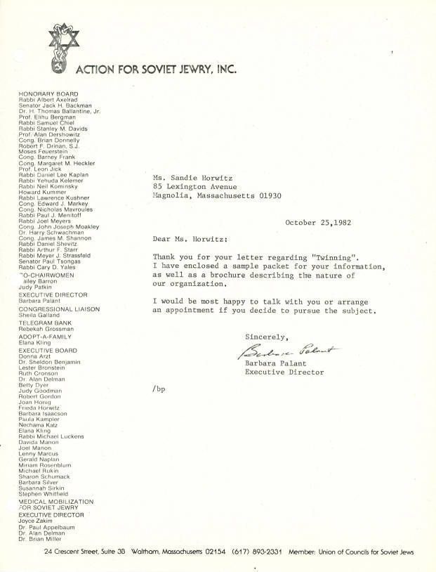 Letter enclosing a packet of information on Action for Soviet Jewry and the Bar/Bat Mitzvah Twinning program.