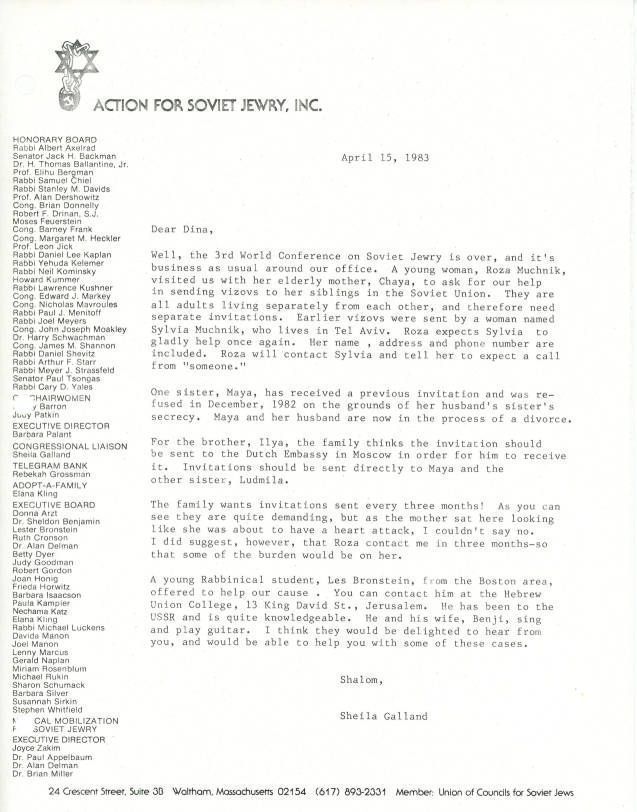 Jews -- Massachusetts -- Boston, Jews, Soviet, Refuseniks, Emigration & immigration, Jews, Soviet--Israel, Rabbis