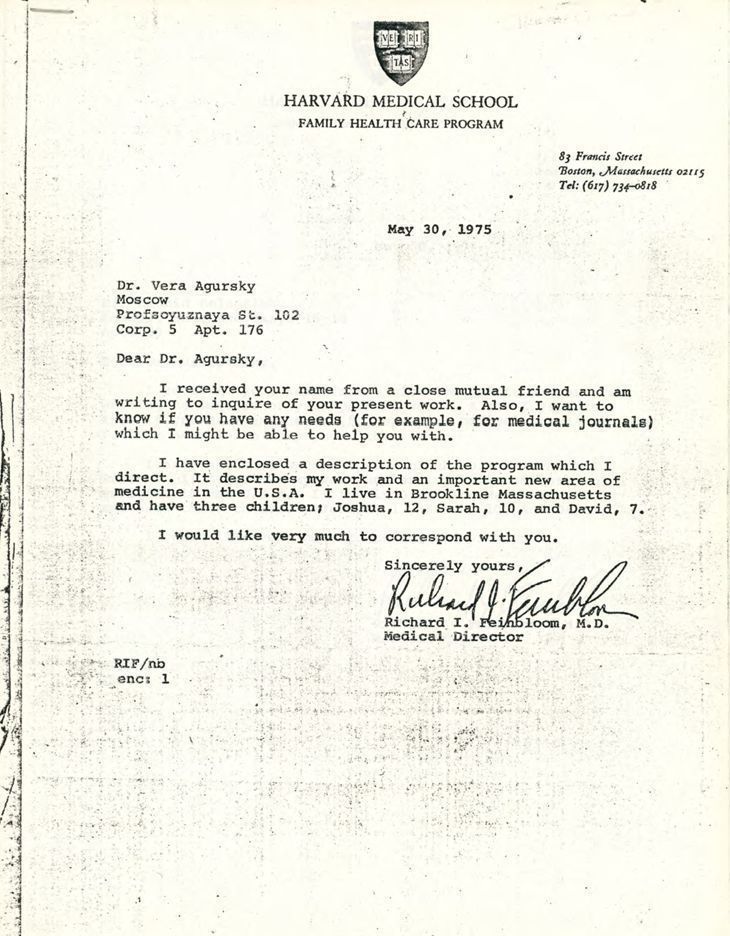 Correspondence - Richard I. Feinbloom to Vera Agursky, Leonid Belapolsky, Emanuel Neifach, Issac PoltinnikovEntry/Object ID