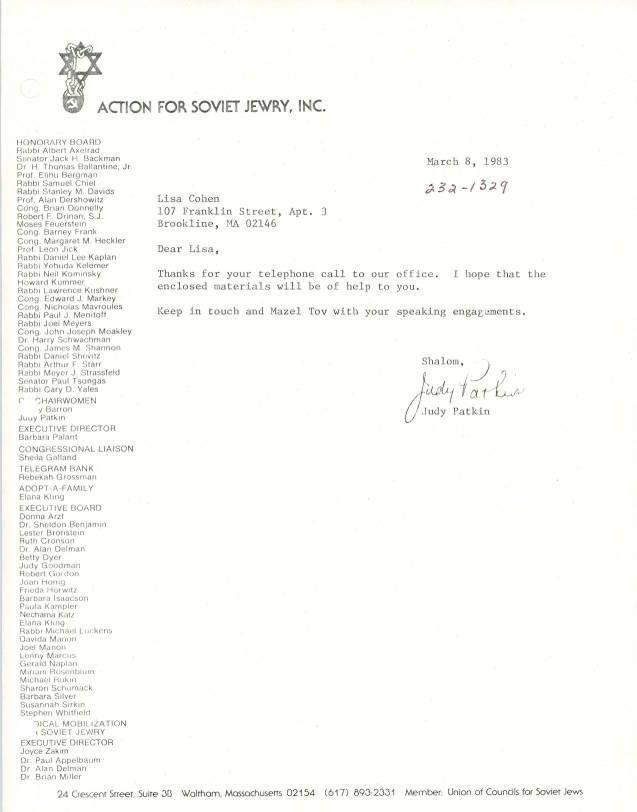 Letter enclosing information on Action for Soviet Jewry.