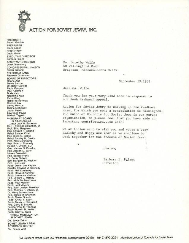 Jews -- Massachusetts -- Boston, Jews, Soviet, Refuseniks, Emigration & immigration, Donations, Rosh ha-Shanah