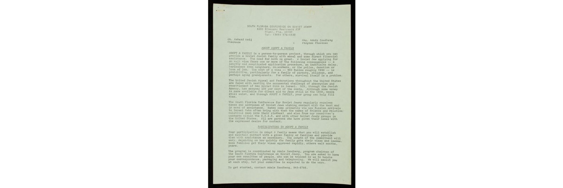 Adopt-A-Family program by South Florida Conference on Soviet Jewry (box 1, folder 2)Entry/Object ID