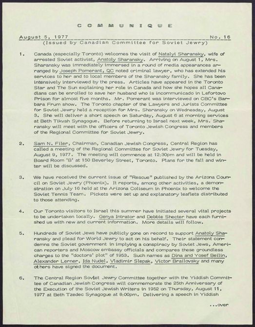 Box 09 folder 282 : Canadian Committee for Soviet Jewry (formerly National Committee for Soviet Jewry)