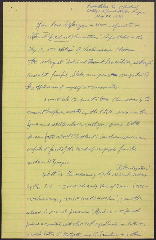 Cleveland Council on Soviet Anti-Semitism, Union of Councils for Soviet Jews, Rosenblum, Louis, Cleveland College of Jewish Studies, Anshe Chesed Congregation (Cleveland, Ohio), Brandeis University