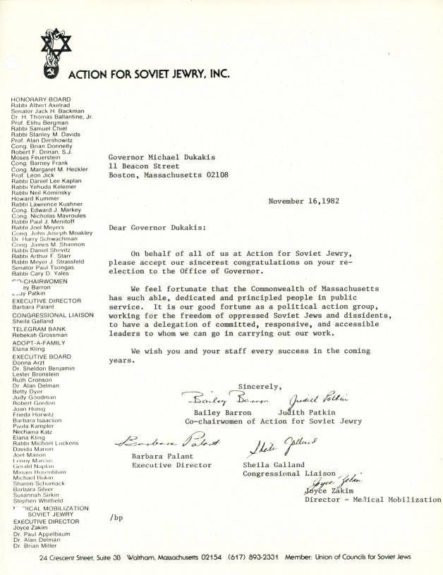 Union of Councils for Soviet Jews, Medical Mobilization for Soviet Jewry, Dukakis, Michael S. (Michael Stanley), 1933-