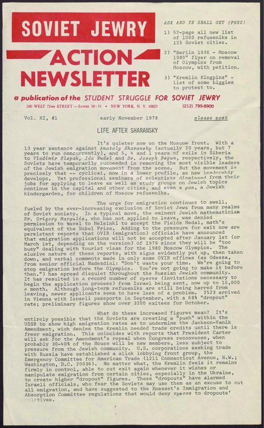 Antisemitism, Jews--Soviet Union--Social conditions, Refuseniks, Political activists, Emigration & immigration, Political prisoners, Jews, Soviet, Jews -- New York (State), Student activism, Students, Scientists, Psychological abuse, Gulag, Passover