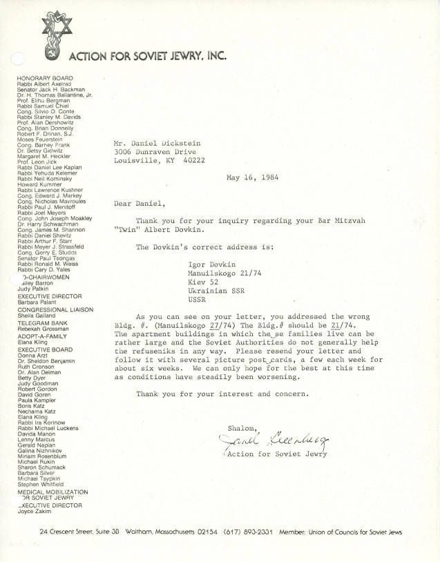 Correspondence - Action for Soviet Jewry to Daniel Dickstein