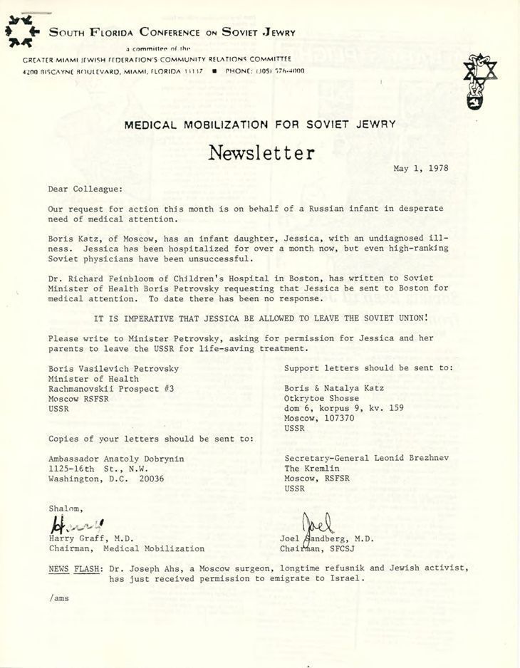 Union of Councils for Soviet Jews, Medical Mobilization for Soviet Jewry, Katz, Jessica