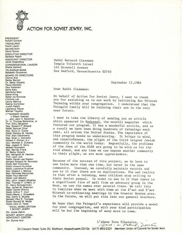 Union of Councils for Soviet Jews, Glassman, Bernard, Temple Tifereth Israel (New Bedford, Mass.)