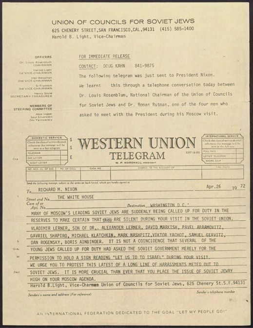 Cleveland Council on Soviet Anti-Semitism, Union of Councils for Soviet Jews, Rosenblum, Louis, Bay Area Council on Soviet Jewry, International League for the Repatriation of Russian Jews, United States. Congress, Light, Harold B., Carney, Charles, J.