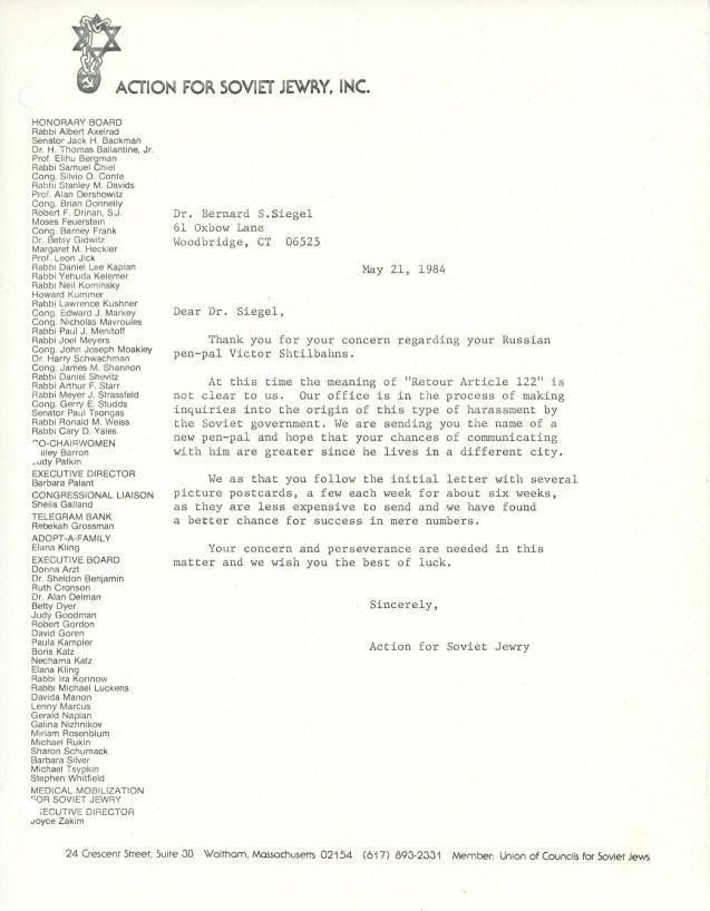 Correspondence - Action for Soviet Jewry to Bernard S. Siegel