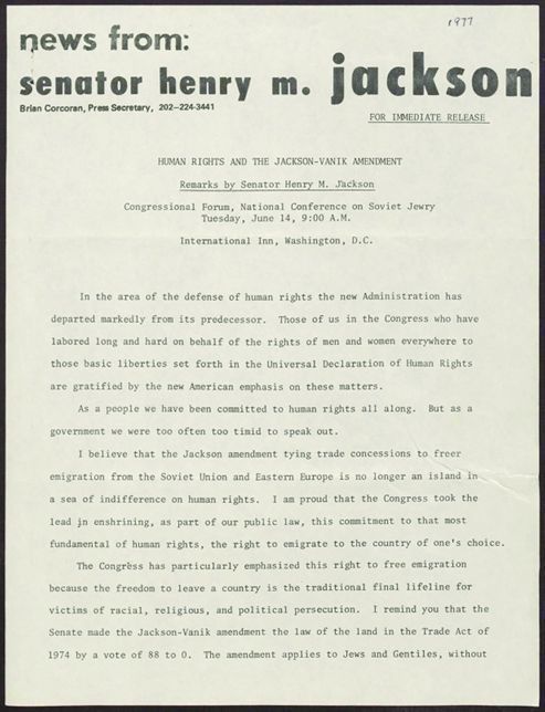 Cleveland Council on Soviet Anti-Semitism, Union of Councils for Soviet Jews, Rosenblum, Louis, United States. Trade Act of 1974. Title 4. Section 402, Vanik, Charles, Jackson, Henry M. (Henry Martin), 1912-1983