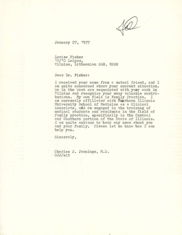 Correspondence - Charles J. Jannings to Larisa Fisher