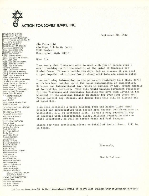 Jews -- Massachusetts -- Boston, Refuseniks, Emigration & immigration, Jews, Soviet, Human rights, Congressmen, Bills (Legislation), Protests