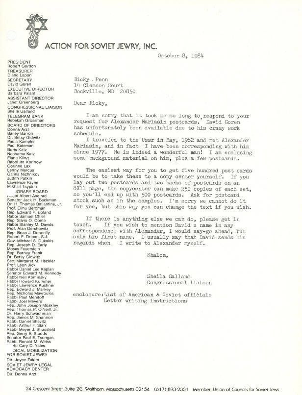 Jews -- Massachusetts -- Boston, Jews, Soviet, Refuseniks, Emigration & immigration, Postcards