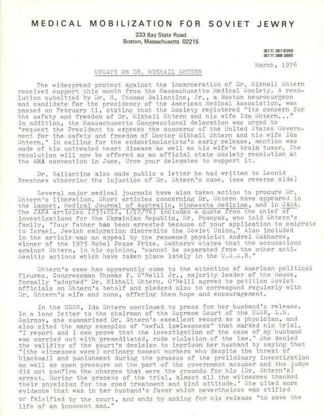 Jews -- Massachusetts -- Boston, Refuseniks, Emigration & immigration, Jews, Soviet, Physicians, Medical care, Political prisoners