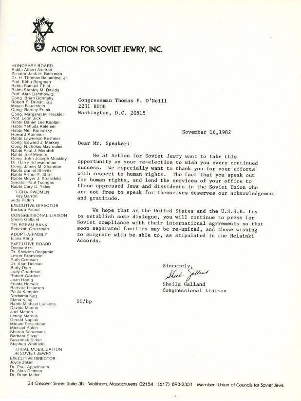 Correspondence - Sheila Galland to congressman Thomas P. O'NeillEntry/Object ID