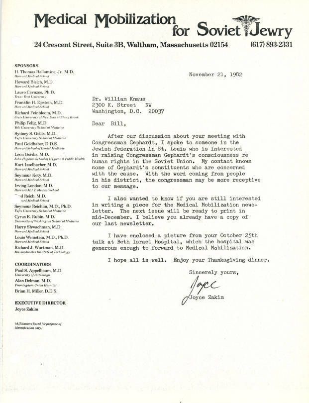 Union of Councils for Soviet Jews, Medical Mobilization for Soviet Jewry, Knaus, William A., Gephardt, Richard A. (Richard Andrew), 1941-