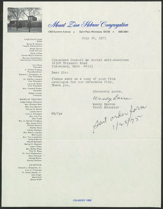 Cleveland Council on Soviet Anti-Semitism, Union of Councils for Soviet Jews, Rosenblum, Louis, Jewish Community Relations Council of Minnesota, Jewish Community Relations Bureau, B'nai B'rith Hillel Foundation Chapter (University of Maryland, College Park), Scheinerm, Samuel L., Perl, William R., Lawrence, Sidney