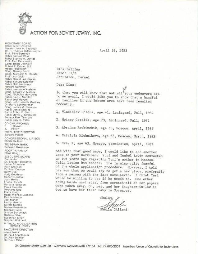 Union of Councils for Soviet Jews, Beilina, Dina, Levin, Galda
