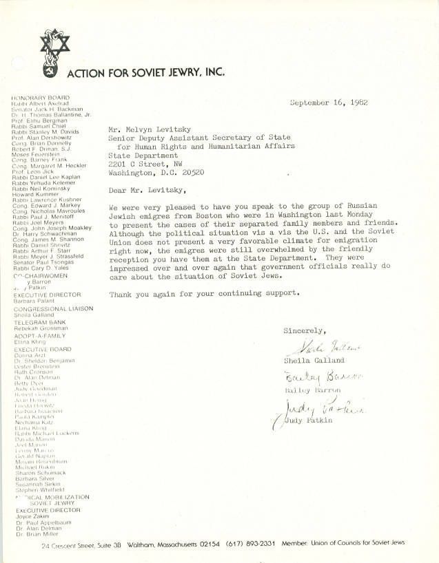 Jews -- Massachusetts -- Boston, Refuseniks, Emigration & immigration, Jews, Soviet, Political action, Human rights, United States. Department of State