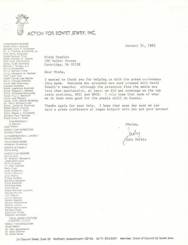 Correspondence - Judy Patkin to Misha Tsypkin