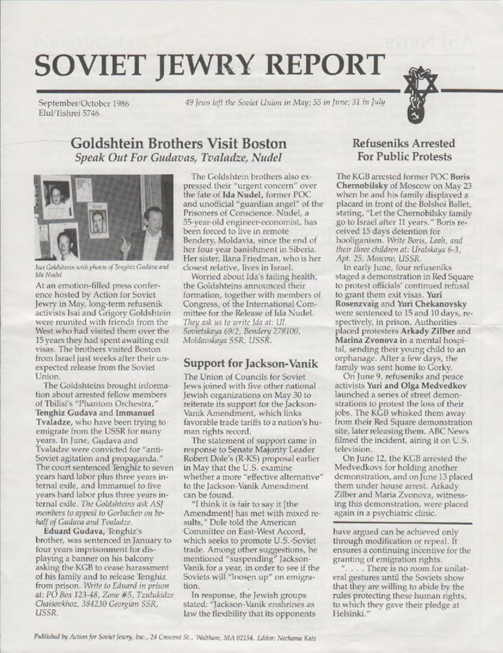 Union of Councils for Soviet Jews, United States. Trade Act of 1974. Title 4. Section 402, Goldshtein, Isa, Goldshtein, Grigory