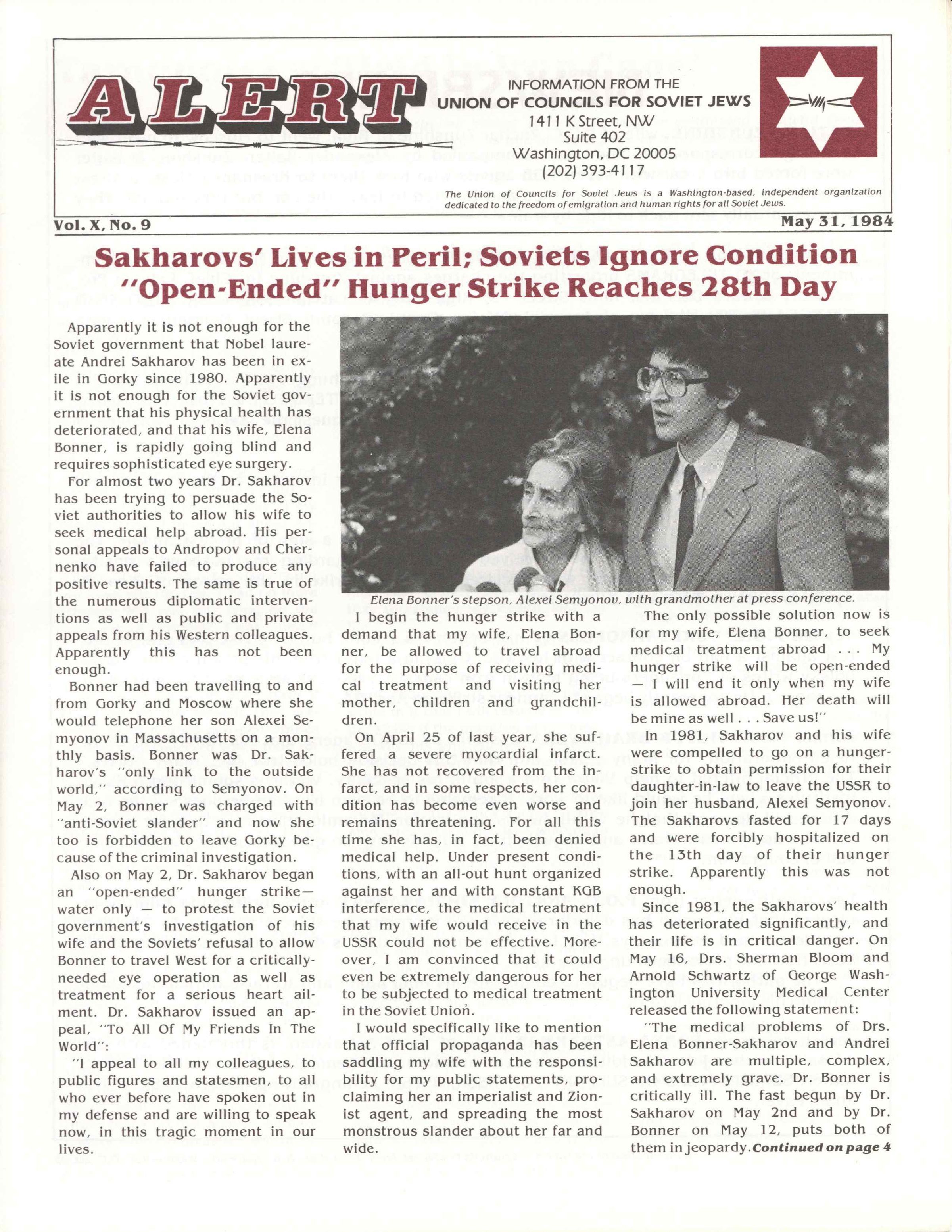 Jews, Soviet, Exiles, Sakharov, Andreĭ, 1921-1989, Bonnėr, Elena, 1923-2011, Semyonov, Alexei, Tarnopolʹskiĭ, I︠U︡. M., Hunger strikes, Gorodetsky, Yakov, Human rights
